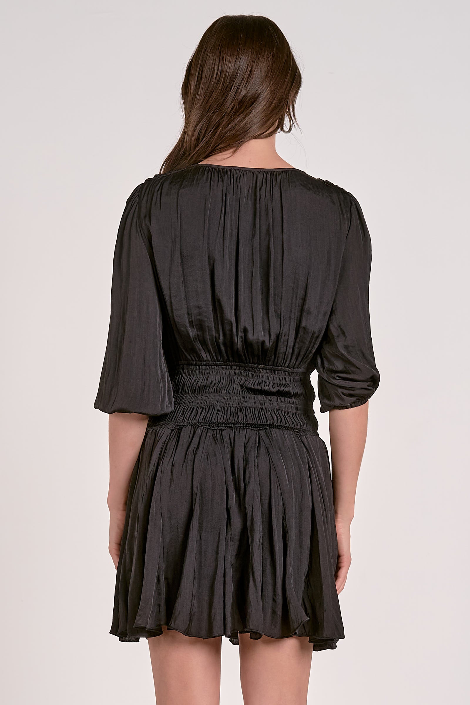 Meet your new go-to for every festive moment. The Maren Smocked Mini Dress combines luxe satin with charming smocked details at the waist and sleeves for a look that's both polished and playful. The three-quarter sleeves keep things sophisticated while the mini length keeps the vibe fun and flirty. Perfect for holiday parties, date nights, or any occasion that calls for a little black dress with personality. Dress it up or down—this one does it all.