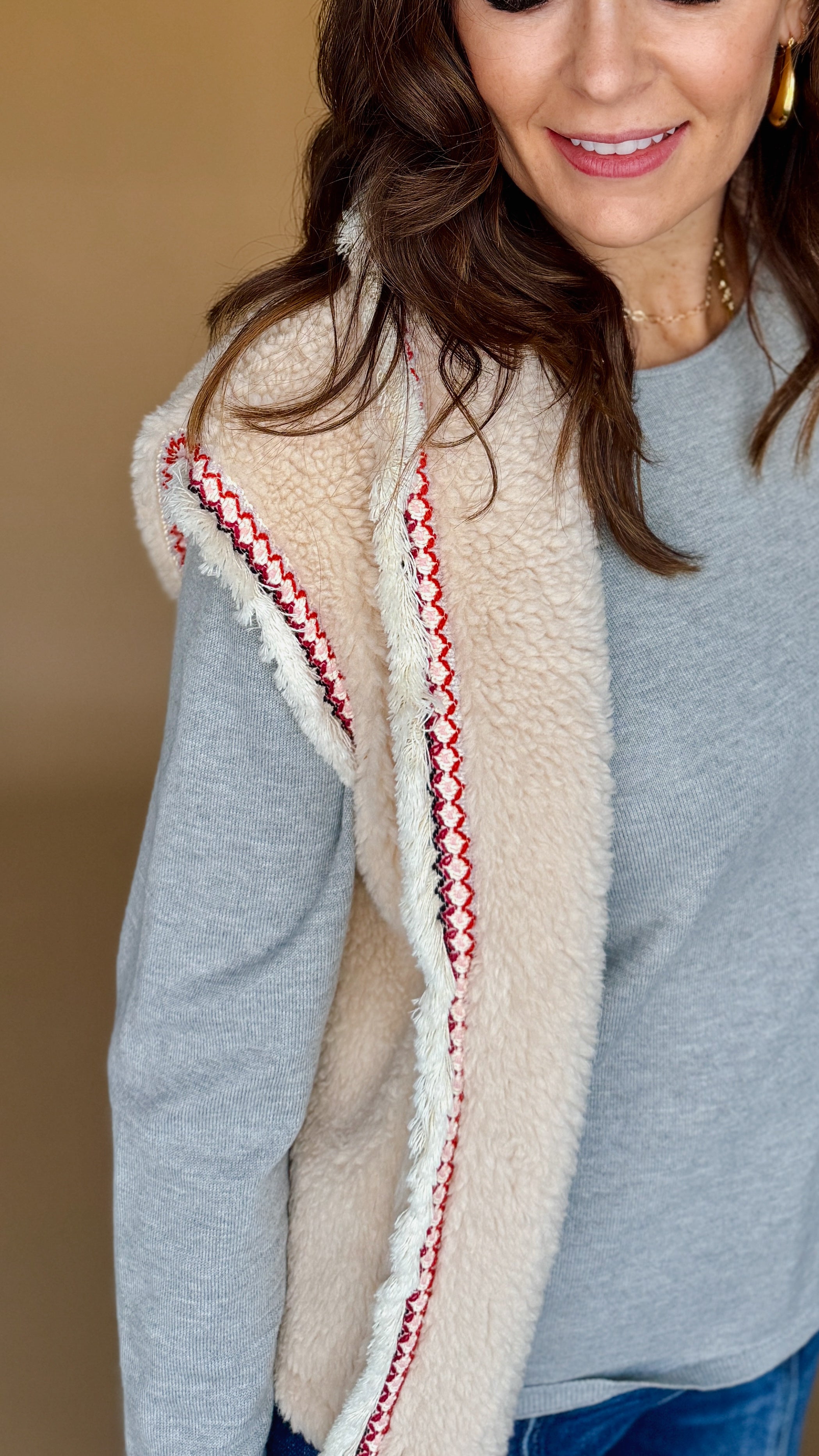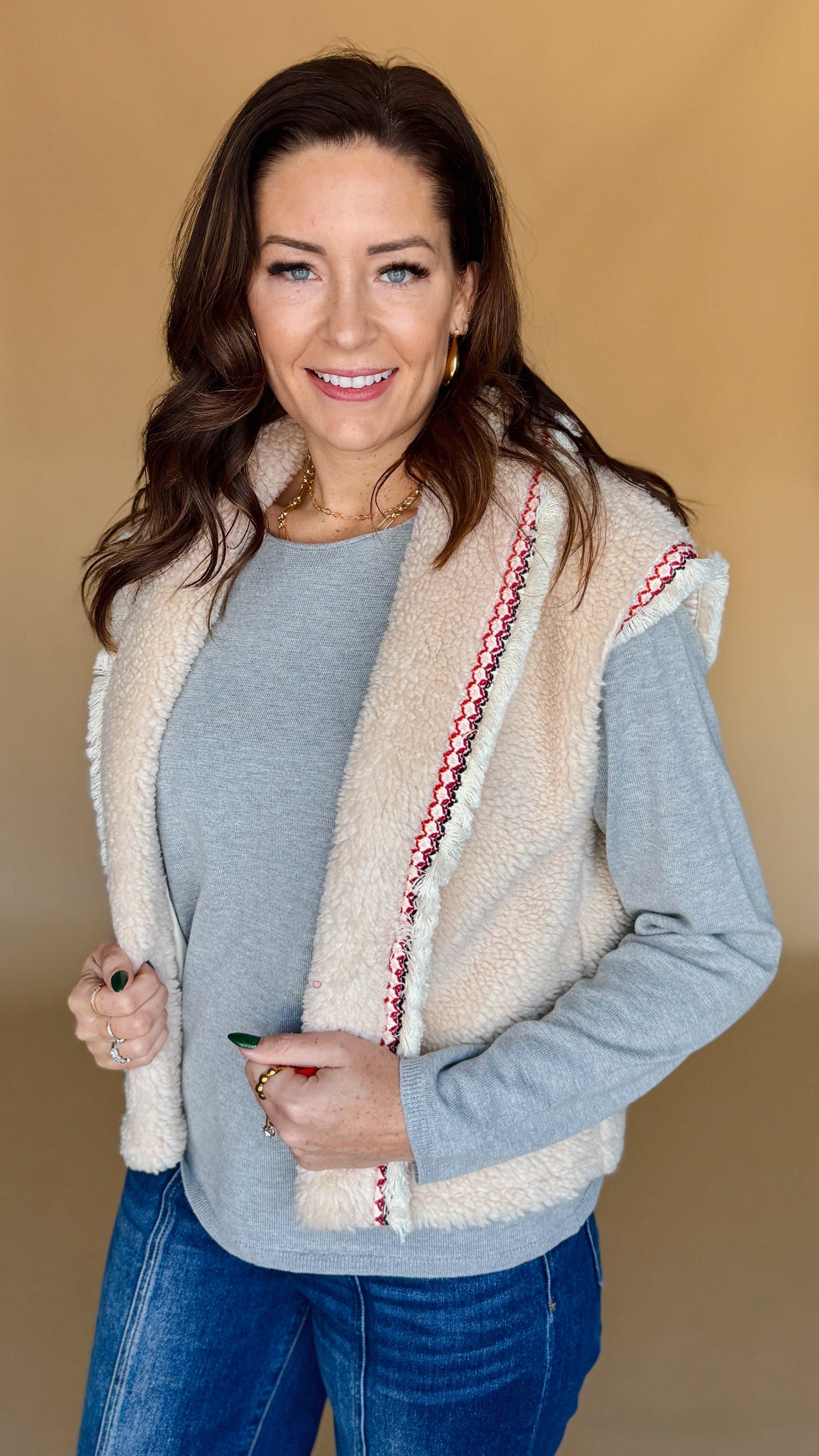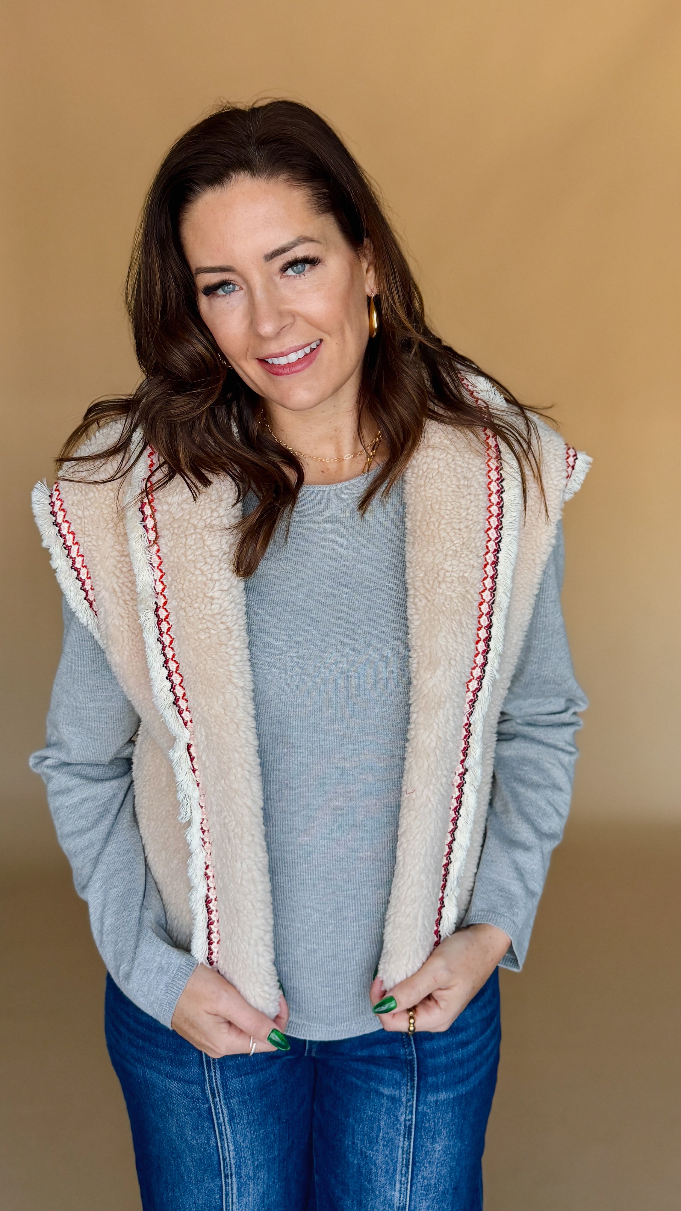 Wrap yourself in pure comfort with the Aspen Sherpa Vest—your new favorite layering piece! Crafted from irresistibly soft sherpa fabric, this cozy essential delivers warmth without the bulk, making it perfect for chilly mornings, casual outings, or lounging at home. The thoughtfully trimmed details add a touch of polish to your everyday look. Whether you're sipping coffee on the porch or running errands around town, this vest keeps you snug and stylish all season long.