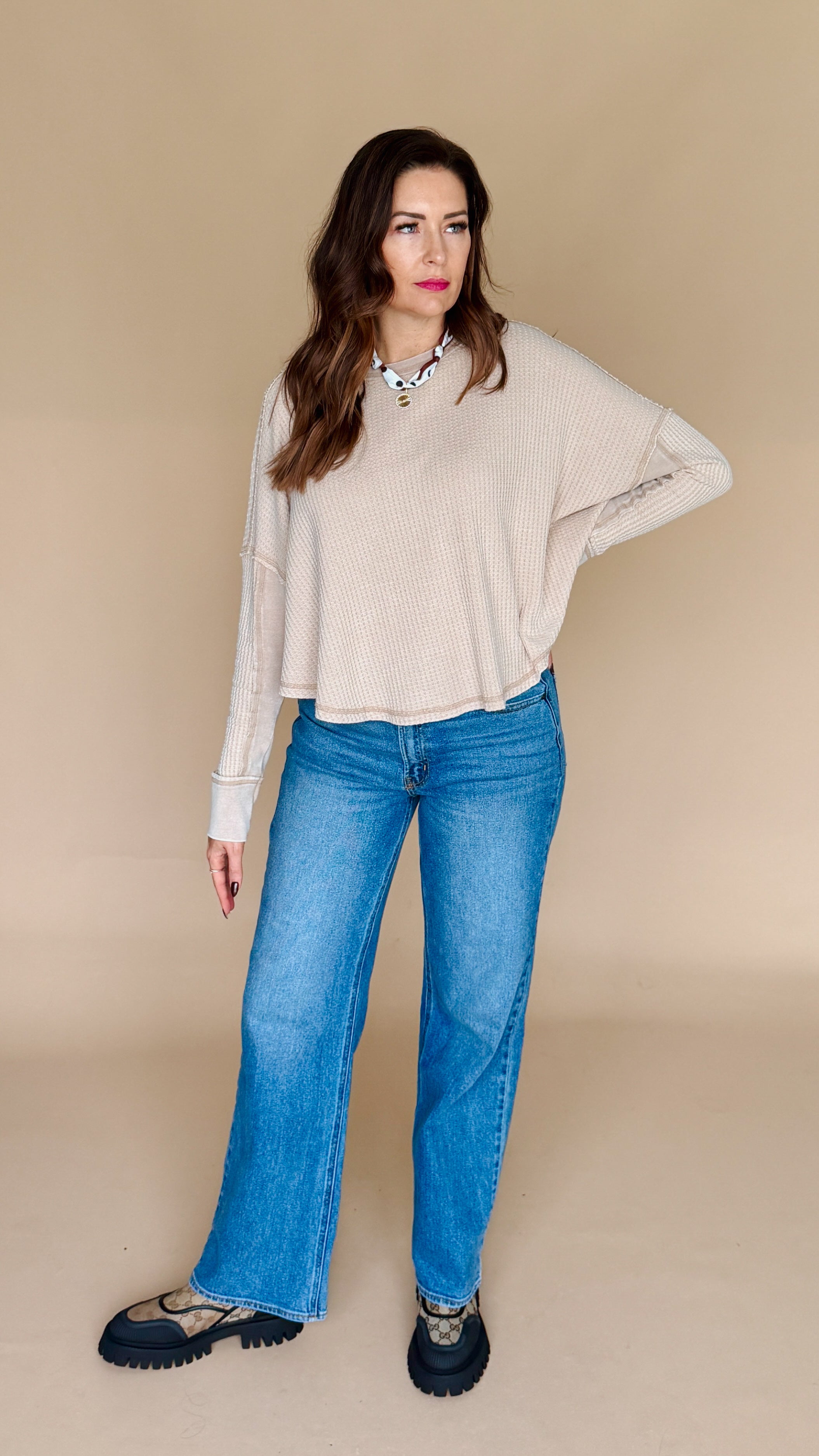 Shake off the chill in style with our It'll Be Alright Thermal Knit Top! This cozy favorite boasts long dolman sleeves, a rounded neckline, dropped shoulders, and ribbed cuffs, all wrapped in a comfy waffle knit. With its rounded hem and defined seams, you’ll stay warm while turning heads. (Cold days don’t stand a chance against this playful, snug essential!)